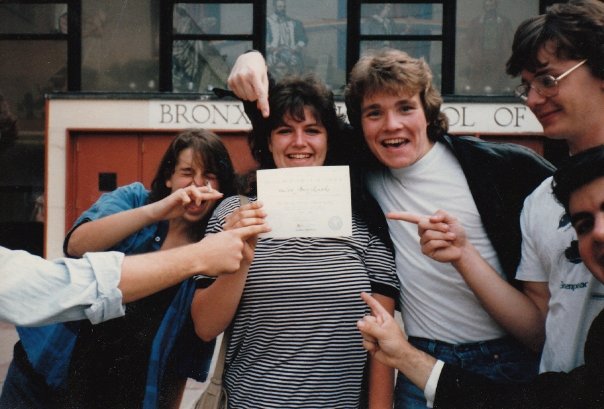 That’s me, with my posse, proudly showing my high school diploma, May 1986